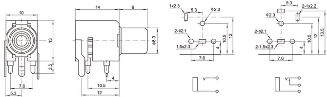 AV插座 AV-8.4-4 90度2P插板 三個定位柱 黃色底座 鍍鎳