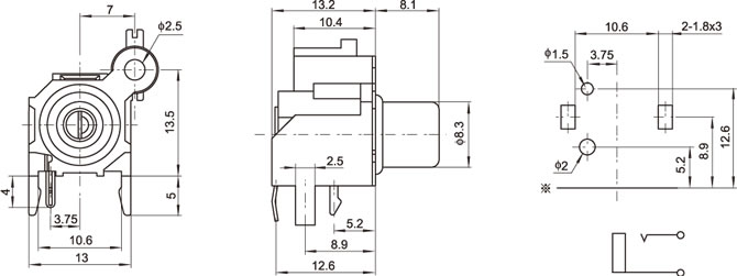 AV插座 AV-8.4-15 90度2P兩腳插板 左側邊帶螺孔 黑色插口