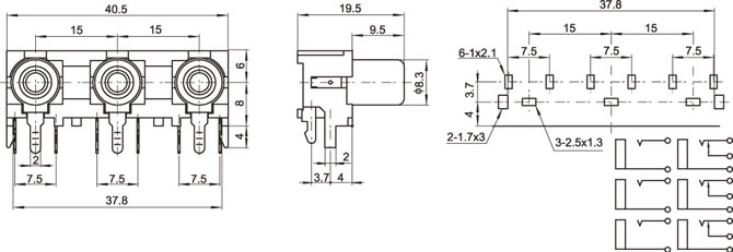 AV插座 AV3-8.4-5 90度三聯排9P插板兩腳 有柱 紅白黃色插口