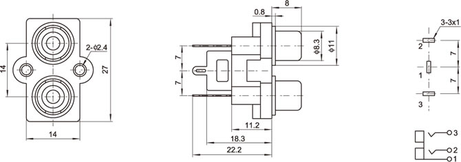 AV插座 AV2-8.4-7C 180度雙聯排3P直插 雙螺孔 紅白色插口