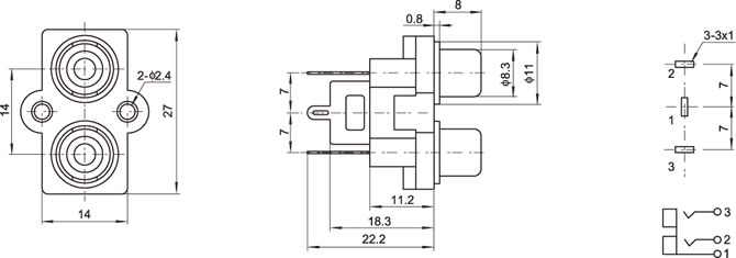 AV插座 AV2-8.4-7C 180度雙聯排3P直插 雙螺孔 紅白色插口