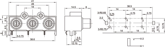 AV插座 AV3-8.4-14D 90度三聯排6P兩腳插板 帶雙螺孔