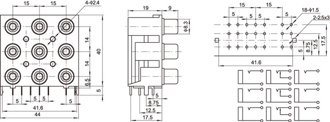 AV插座 AV9-8.4-19 90度三層三聯排 21P兩腳插板