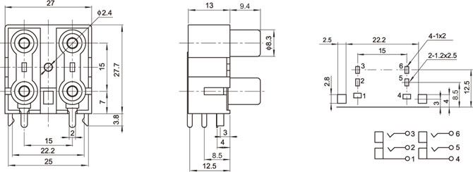 AV插座 AV4-8.4-21 90度雙層雙聯 6P兩腳插板