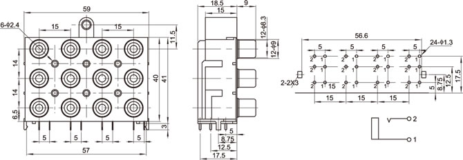 AV插座 AV12-8.4-26 90度三層24P四聯排插板 兩腳