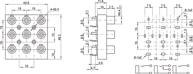 AV插座 AV2-8.4-29 90度三聯排七腳插板 有柱帶孔 單個全塑