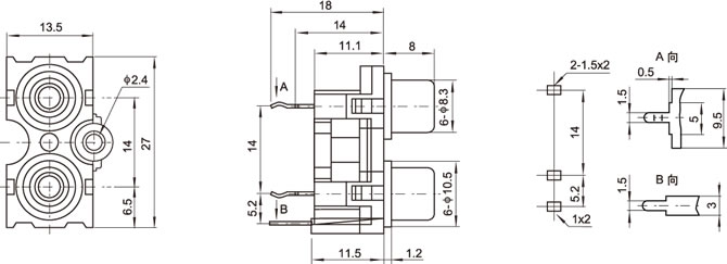 AV插座 AV6-8.4-32C 180度9P直插 六聯排 帶雙螺孔 紅白雙色