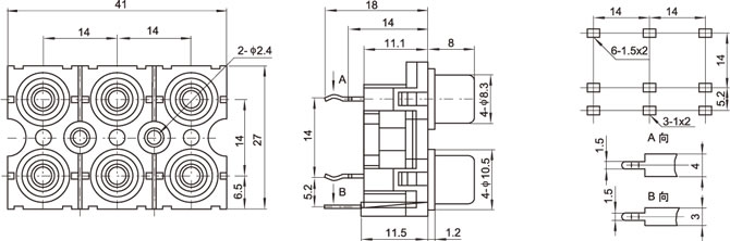 AV插座 AV6-8.4-32C 180度9P直插 六聯排 帶雙螺孔 紅白雙色