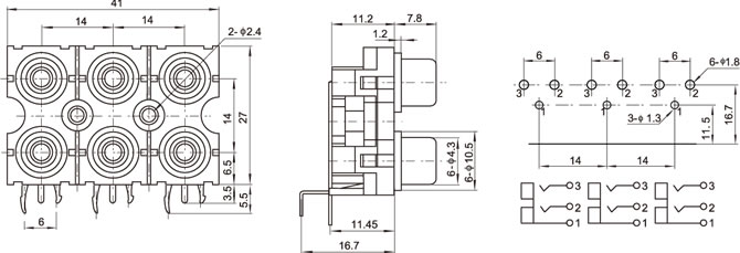 AV插座 AV6-8.4-33 90度雙層六聯排 9P插板