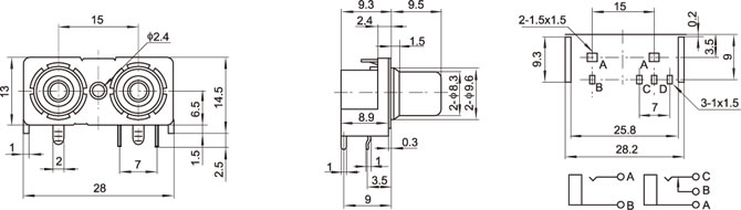 AV插座 AV2-8.4-34 90度雙層五腳插板 帶螺孔
