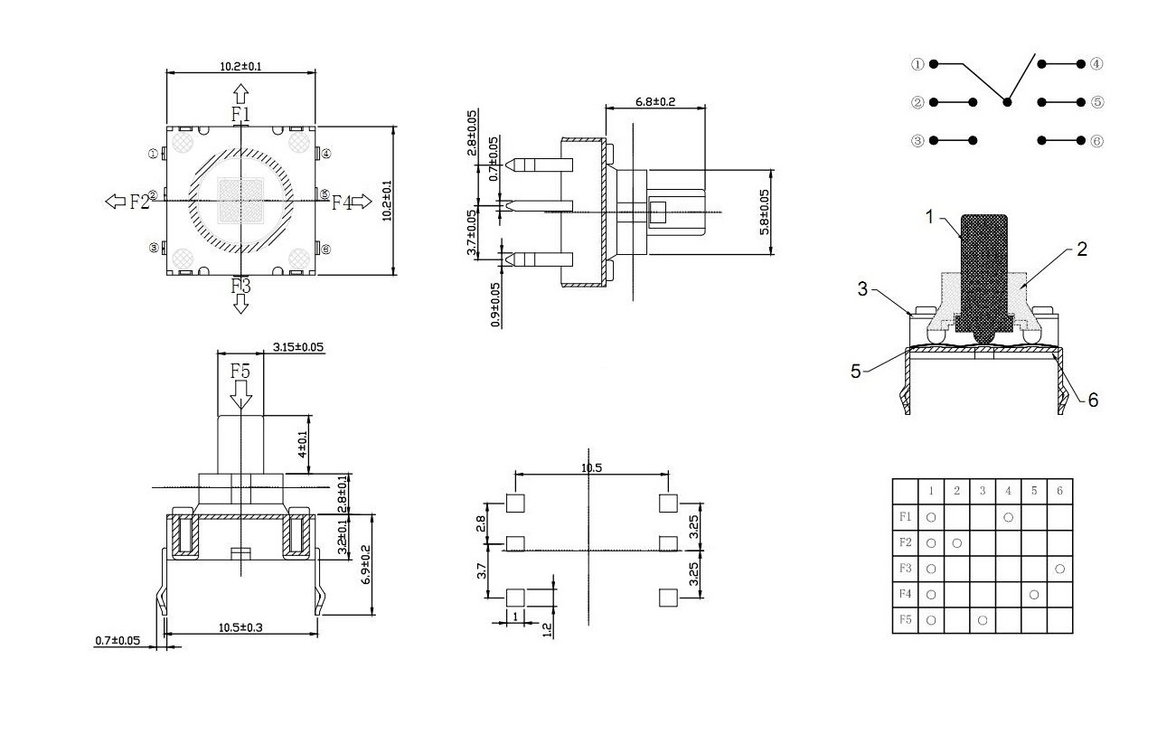 MultiFunctional Five-way Switch Light Tact Five-way Switch technical parameters: