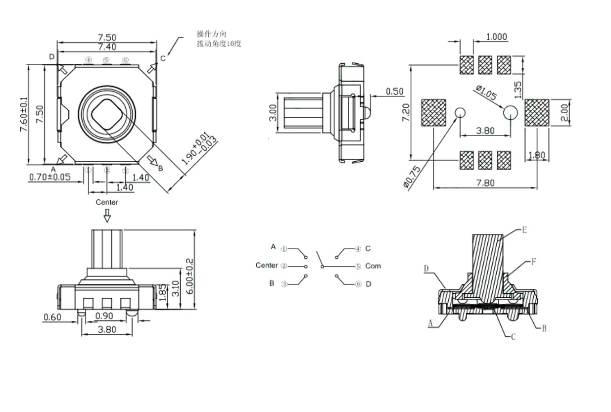 MultiFunctional Five-way Switch Light Tact Five-way Switch technical parameters: