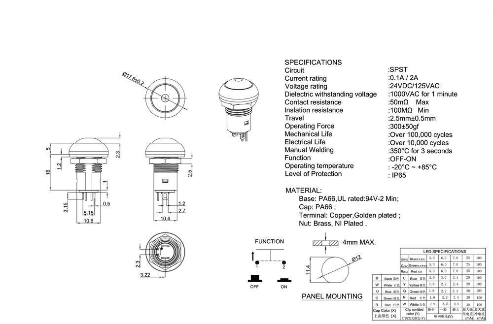 PUSH 正向按鈕開關