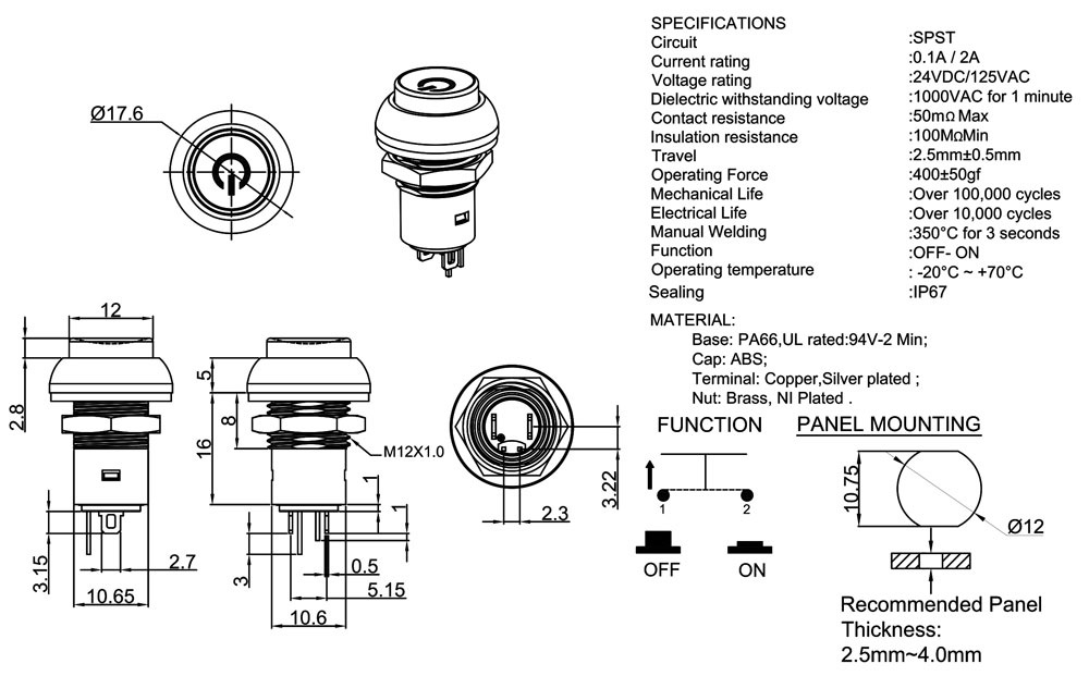 Ø8~ Ø12 按鈕開關