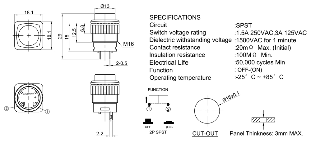 PUSH 正向按鈕開關