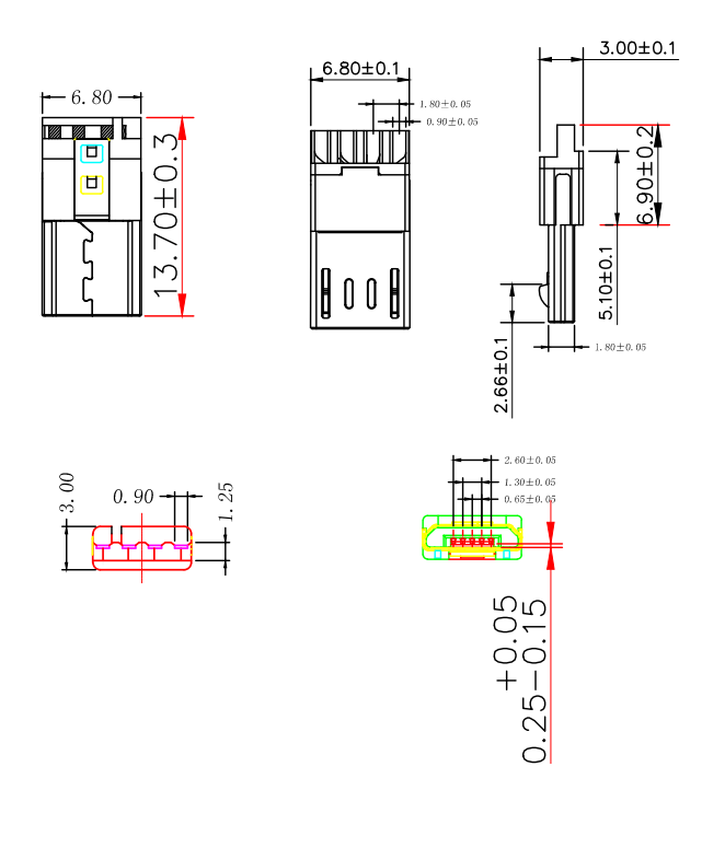 MUB-B-5-MM-B-PG8.8-2M2P-S (MICRO USB 母座B型 / PG8.8定位2腳2平貼/ 卷邊 )