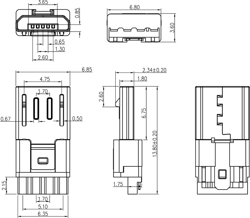 MUB-A-5-TM-0-A5B4-J (MICRO USB 公頭 / 短板焊線/前5後4/ 卡勾 )