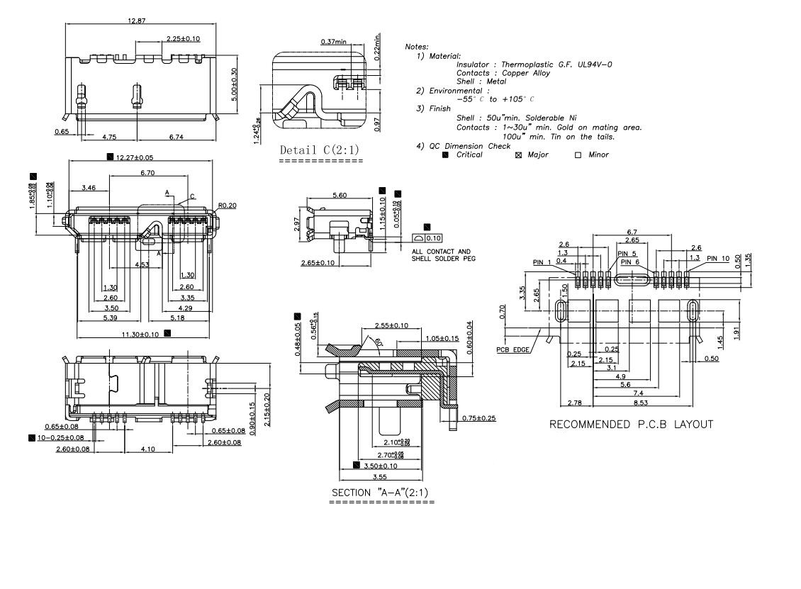 MUB-B-10-MM-3.0-V1.15-3P-PG11.3-S (MICRO USB 10P母座4.95 /1.1.3 / 3腳/ 卷邊 )