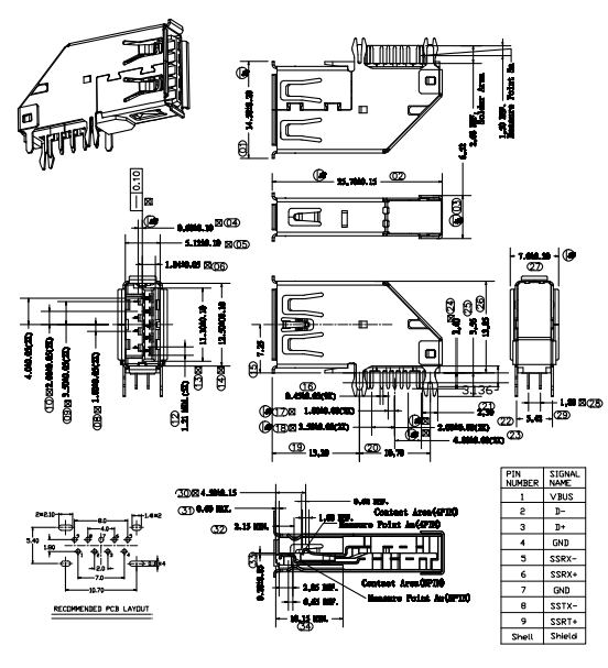 US-B-3.0-9-LD-B-S-J-4PY (USB 3.0 / 側插件 / 魚叉卷邊 / 定位)