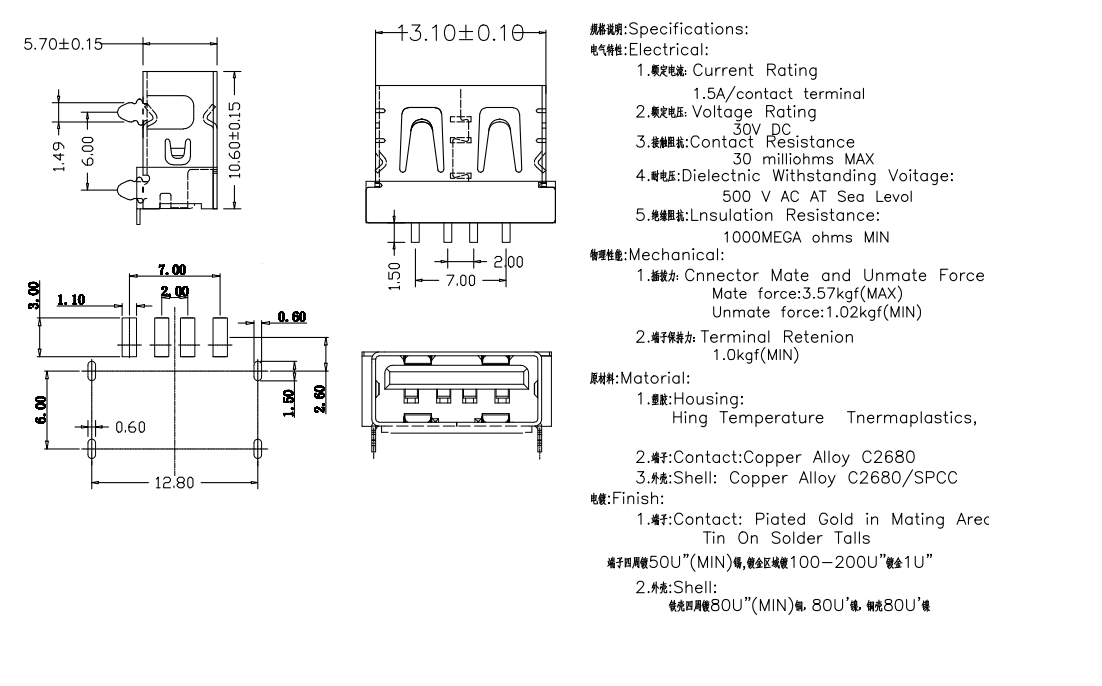 US-B-2.0-4-MD-W-14.2-S-J-2P(USB 2.0 / 14.0 插件 / 後蓋 / 卷邊 / 定位)