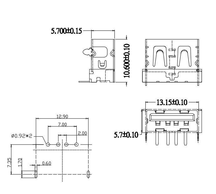 UB-B-2.0-4-MD-W-10.6-N (USB 2.0/ 短體10.6 / 6.3高)